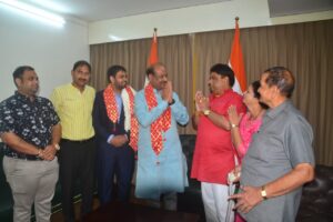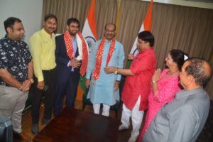इसी कड़ी में शांत्तम जैन के पिता,परम पूज्य गुरु माँ गणिनी आर्यिका रत्न 105 श्री विशुद्धमती माताजी के परम भक्त एवं अग्रवाल डायमंड के मैनेजिंग डायरेक्टर ओम जैन सर्राफ एवं डायरेक्टर माधुरी जैन सर्राफ एवं संगीत जैन सर्राफ ने अपने परिवार सहित लोकसभा स्पीकर महामहिम माननीय ओम बिरला को दुपट्टा पहनाकर स्वागत सत्कार और अभिनंदन किया!