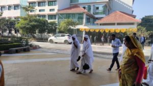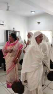 इस मंगल बेला में विश्व विद्यालय की कुलाधिपति डॉ सुधा मलैया ने उनकी आगवानी की व समस्त आर्यिका संघ को विश्वविद्यालय परिसर का अवलोकन कराया।साथ ही विश्वविद्यालय की लाइब्रेरी में जैन साहित्य का अवलोकन भी कराया। इसके पश्चात आहार दान देकर अपने जीवन को धन्य किया।