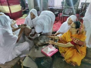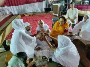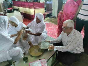 उन्होंने कहा भगवान श्री पारसनाथ जी का मोक्ष कल्याणक दिवस है, जिस प्रकार लड्डू मिठाई देखकर हमारा मन प्रसन्न होता है, वही प्रसन्नता से हमें भगवान को भी लाडू मोदक चढ़ाना चाहिए।मोदक आनंद देने वाला है उसी प्रकार प्रभु की भक्ति भी आनंद देती है।आचार्य श्री ने आगे बताया कि एक कथानक के माध्यम से भगवान पार्श्वनाथ के पूर्व पर्याय के दोनों भाइयों का वर्णन बताया कि किस प्रकार हाथी वन में रहते हुए नियमो व्रत का पालन करते हुए देव गति को प्राप्त करते है ,उसी प्रकार श्री महावीर स्वामी की पूर्व पर्याय देखे तो पुरवा भील, सिंह पर्याय से जीव श्री महावीर स्वामी बने है। आज सर्वश्रेष्ठ मानव जाति अपने नियमो व्रतों को भंग कर दोष लगाते है। आप सब सौभाग्य शाली है आपको दीक्षा महोत्सव निर्वाण कल्याणक का मंगल मय अवसर मिला है।आज सौभाग्य शाली महिलाओं ने दीक्षार्थियों के लिए चोक पुरन की कार्य किया है यह केवल चांवल और कपड़े बिछाने की क्रिया नही है, आपको सबको यह भावना करना चाहिए कि हमारे जीवन मे भी ऐसा मंगल अवसर आवे कि हमारी दीक्षा के लिए कोई चोक पुरने का कार्य करे हमारी दीक्षा भी जल्दी हो।