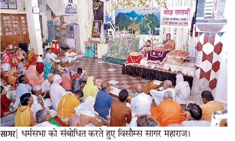 शनिवार को गौराबाई दिगंबर जैन मंदिर कटरा में चातुर्मास रत क्षुल्लक 105 श्री विसोम्य सागर महाराज ने धर्मसभा मे अहिंसा का महत्व बताया उन्होने इस बात पर बल दिया की आज देश में सुख, शांति के लिए अहिंसा धर्म की बहुत आवश्यकता है अहिंसा धर्म का प्रचार-प्रसार बहुत जरूरी बताया । दुनिया में जितने प्रकार के व्यक्ति होते हैं, उतनी ही प्रकार की सोच होती है। यह भी कहा की हमें दूसरों की सोच में कमी निकालने की जगह अपनी सोच में सकारात्मकता लाने की जरूरत है तभी हम अपना कल्याण कर सकते हैं।