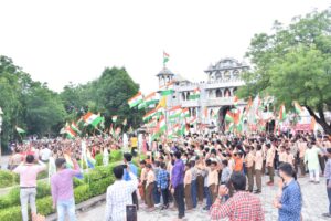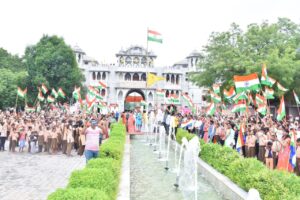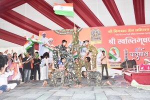 के चित्र का अनावरण किया।तत्पश्चात जयकारों के बीच दीप प्रज्जवलन किया गया। स्कूली छात्र छात्राओं द्वारा देश भक्ति की अलख जगाते हुए विभिन्न प्रदेशों की छाप छोड़ते हुए