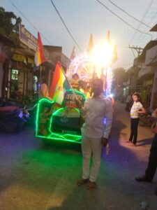 आरती शोभायात्रा के मुख्य आकर्षण में बैंड बाजे ,रथ, घोड़ी पर ध्वजवाहक,दिव्य घोष और ड्रोन के माध्यम से वीडियो शूटिंग की जा रही है।