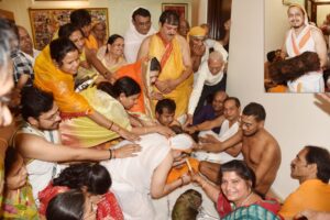प्रचार संयोजक विनेश सोगानी ने बताया कि सर्वप्रथम गुरुदेव की पूरे भक्ति भाव से पूजन करवाई गई। पूजन में विभिन्न स्थानों से आए गुरुदेव के भक्तों ने पूर्ण विधि से संपूर्ण सामग्री के साथ पूजा अर्चना की इसके पश्चात धर्म सभा का मंगलाचरण के माध्यम से विधिवत शुभारंभ ऐलक वीप्रमाण सागर महाराज ने किया एवं भगवान महावीर स्वामी व तपस्वी सम्राट आचार्य रत्न सुमति सागर महाराज के चित्र के समक्ष दीप प्रज्वलित करने का सौभाग्य सुशील जय प्रकाश गिरीश महेश जैन छतरपुर प्रदीप जैन फरिया, राजेंद्र जैन कोटिया कोटा ,धर्मेंद्र भंवर लाल मालपुरा वालों को प्राप्त हुआ । आचार्य गुरुवर विवेक सागर महाराज का पाद प्रक्षालन करने का सौभाग्य सुशील जैन श्रीमती नीरा जैन, जय प्रकाश जैन, गिरीश जैन,श्रीमती कृष्णा जैन को एवं शास्त्र भेंट करने का सौभाग्य बाबूलाल, सुरेंद्र जैन को प्राप्त हुआ ।इस अवसर पर मानसरोवर महिला मंडल द्वारा भी शास्त्र भेंट किया गया ।सभी सम्माननीय अतिथियों का तिलक एवं माल्यार्पण कर एम पी जैन, कैलाश सेठी, पुष्पेंद्र जैन पचेवर,हेमेंद्र सेठी, विनेश सोगानी,बीरेश जैन टीटी, राजेंद्र सोनी, सुनील गोधा,विमल बाकलीवाल दीपक पहाड़िया, श्रीमती सुशीला टोंग्या श्रीमती शीला जैन श्रीमती कृष्णा जैन श्रीमती आशा सेठी,श्रीमती प्रीती सोगानी, श्रीमती सुनिता गोधा ने स्वागत किया