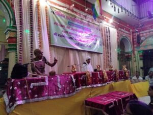 मंदिर मे संगीतकार के भजनों पर भक्तों ने भाव- विभोर होकर नृत्य किया| मुनि श्री ने अपनी अमृतवाणी मे कहा कि शब्द दीन हीन में जोश भर देते है| शब्द शांत भी कर देते है|शब्दों में बहुत ताकत है|शब्द ही वाणी और वीणा बन जाते हैं|और शब्द ही बांसुरी बना देते है|शब्द जीवन बदल सकते हैं|