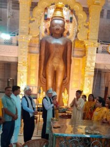 इसके पहले दर्शनोदय तीर्थ थूबोनजी के खड़े बाबा के दरबार में कमेटी के महामंत्री विपिन सिघई संरक्षण प्रचार मंत्री विजय धुर्रा संजीव भारिल्य ने न्याय मूर्ति श्री जैन व आयोग के सदस्य श्री ममतानी का साल श्री फल बड़े बाबा के विशाल चित्र को भेंट कर सम्मानित किया।
