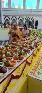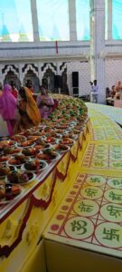 1008 श्री शांति नाथ भगवान को 1008अर्घ चारों दीक्षार्थी बहने साधना दीदी, नेहा दीदी , दीप्ती दीदी पुनम दीदी द्वारा समर्पित किए गए। 5 oct को यह बहने नवीन रूप में होगी और संसार मार्ग को छोड़ आर्यिका दीक्षा को लेकर इस मानव देह को धन्य करेगी यह क्षण सजोकर रखे जाने जेसे है हम भाग्यवान है जो इन पलो को देख पा रहे है।