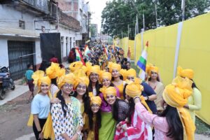 जैन संत गुरुदेव विशल्य सागर जी के सानिध्य में श्रद्धालु भक्तों के साथ विशाल शोभायात्रा दिव्य घोष बैंड टीकमगढ़ मध्य प्रदेश, बग्गी, घोड़ा, झांकी टोटो गाड़ी, बैंड, जैन स्कूल बच्चों का बैंड, भांगड़ा ताशा पार्टी, बोकारो झारखंड ताशा पार्टी, के साथ निकाली गई ,भक्तजन केसरिया वस्त्र और श्वेत वस्त्र में साथ साथ चल रहे थे इस महायज्ञ धार्मिक अनुष्ठान में सम्मेद शिखर पारसनाथ से लाए हुए भगवान की 100 प्रतिमा को भक्तजन नंगे पांव अपने सिर पर साथ में लेकर चल रहे थे गंधकुटी मे भगवान की प्रतिमा लिए