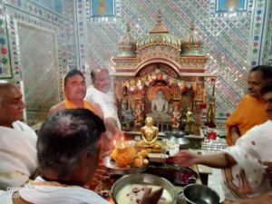 इस बेला मे मूलनायक भगवान् शांतिनाथ भगवान् के समक्ष्य पूजन किया गया उपरान्त निर्वाणकाण्ड महावीरा ष्टक बोलकर निर्वाण लाडू समर्पित किया गया व गौतम स्वामी भगवान् का केवलज्ञान कल्याणक महोत्सव मनाया गया यह क्रम सभी वेदियो पर किया गया वही इस बेला मे समाज की लोकप्रिय पार्षद वर्षा उतम जैन वैभव जैन धरा जैन रमेशचंद जैन प्रेमलता जैन गौरव जैन श्रेया जैन भूपेंद्र सावला शोभना सावला कोविड सावला संजय बडजात्या जीतेन्द्र वेद सोमेन्द्र वेद सुभाष सेठी आदि ने अपनी सहभागिता दी वही शांतिनाथ दिगंबर जैन नसिया व महावीर दिगंबर जैन मंदिर भी भक्ति भाव के साथ पूजन अभिषेक कर निर्वाण लाडू समर्पित किये गए वही त्रिमूर्ति जिनालय में भी अभिषेक पूजन कर निर्वाण लाडू समर्पित किया गया जहा