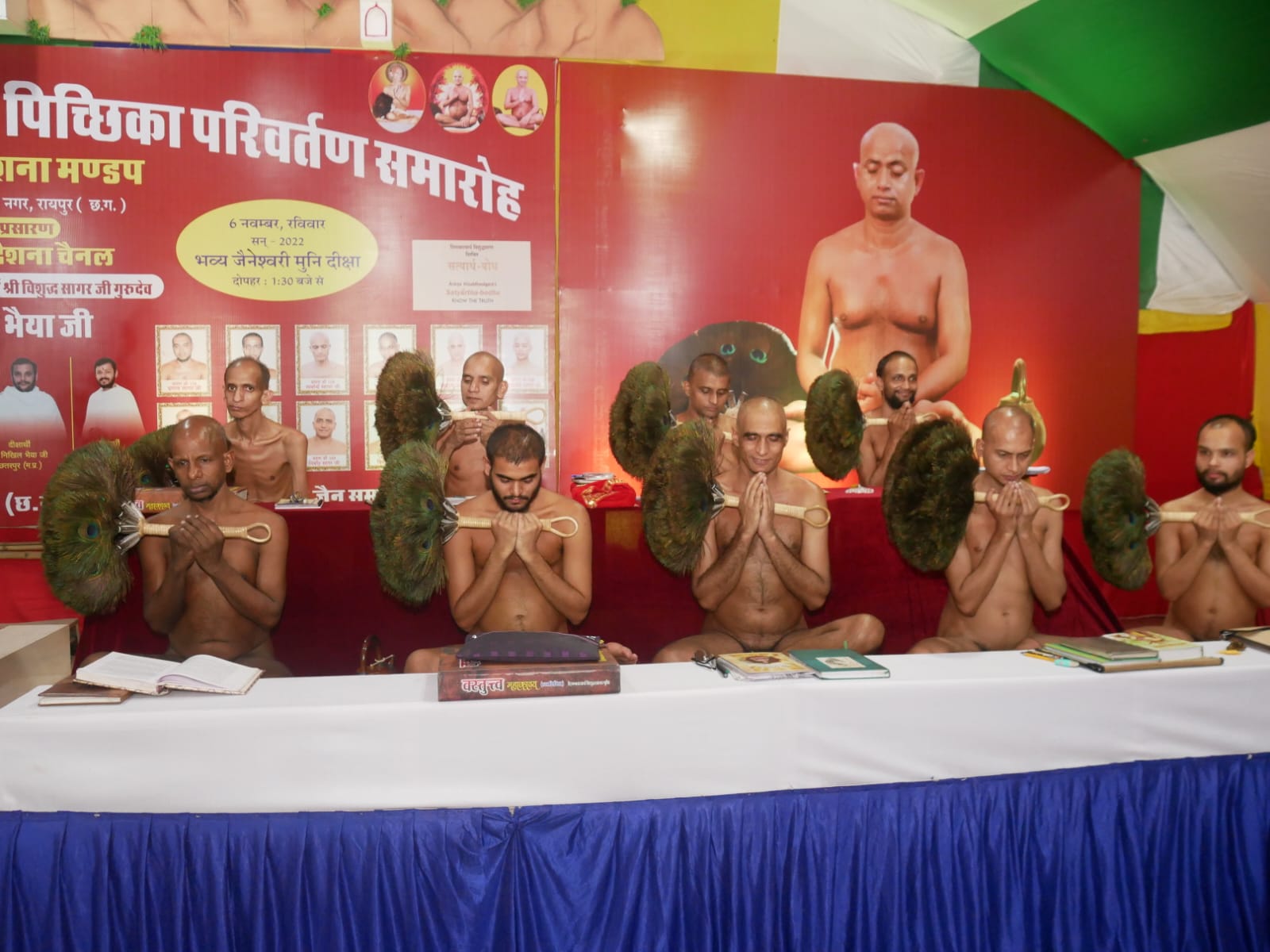 रायपुर के इतिहास में प्रथम बार 22 साधुओं के मध्य 3 बाल बह्मचारी भैया जी की दिगंबर दीक्षा होने जा रही है। जिनके दीक्षा प्रदाता आचार्यश्री विशुद्ध सागर जी महाराज स्वयं अपने करकमलों से ब्रम्हाचारी सौरभ भैया( परतबाड़ा), ब्रम्हाचारी निखिल भैया (छतरपुर) ब्रम्हाचारी विशाल भैया (भिण्ड) को जैनेश्वरी दीक्षा प्रदान करेंगे। हजारों की तादाद में भारतवर्ष के विभिन्न प्रांतों के लोग,विभिन्न संप्रदायों के साधु-साध्वी उपस्थित होकर इस राग से वैराग्य की ओर अग्रसर होने वाले दीक्षार्थियों की दीक्षा के साक्षी बनेंगे। यह आयोजन 6 नवंबर को मध्यान्ह 1 बजे विशुद्ध देशना मंडप फाफाडीह गली नं.4 में संपन्न होगा।