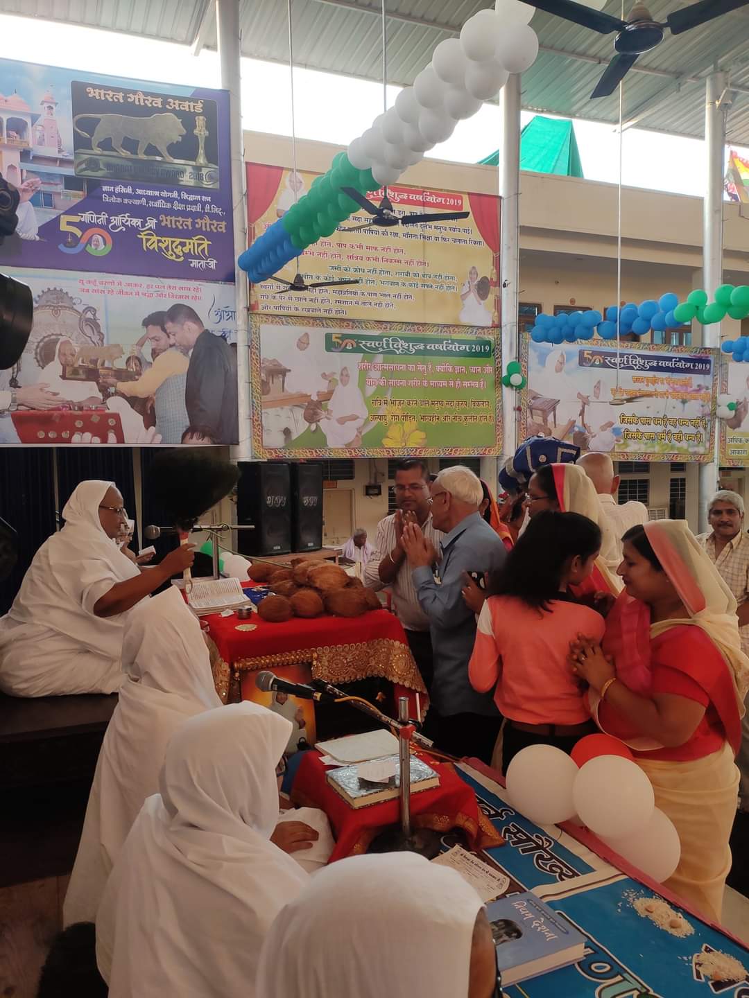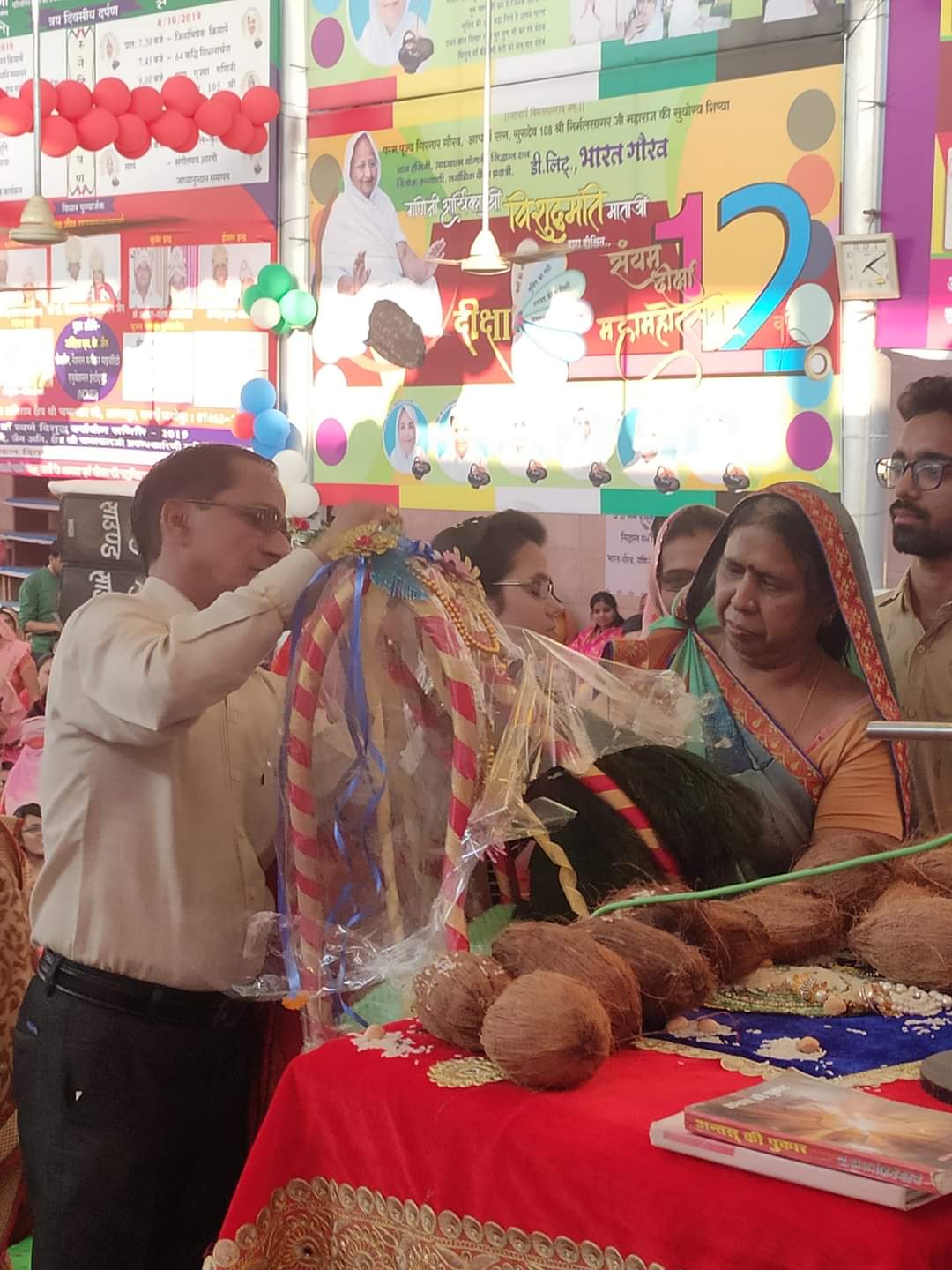 जैन जगत की आस्था के केन्द्र अहिंसा सर्किल आलनपुर स्थित दिगम्बर जैन अतिशय क्षेत्र चमत्कारजी में जिनेन्द्र भक्तों से खचाखच भरे विशुद्ध सभागार में झूमते-गाते हुए बारी-बारी से आर्यिका संघ को शास्त्र एवं वस्त्र भेंट किए गए थे।