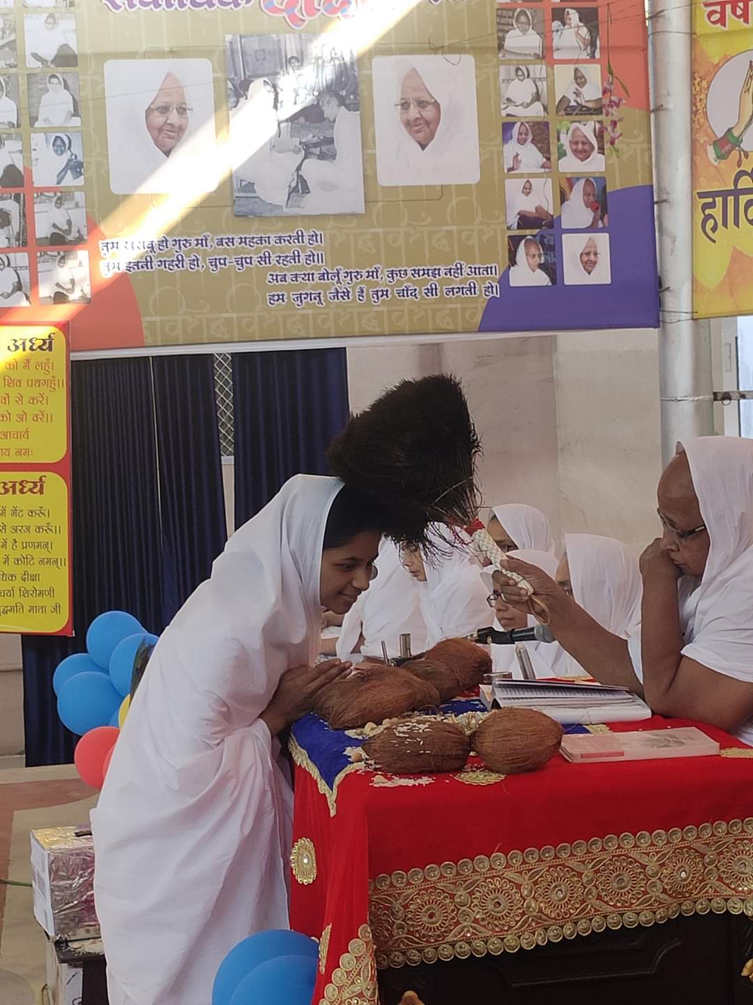 गुरु माँ को नवीन पिच्छिका भेट करने का पुण्य मंजु देवी जैन को मिला था वह पुरानी पिच्छिका प्राप्त करने का पुण्य आजीवन ब्रह्मचर्य व्रत ग्रहण व तीन प्रतिमा व्रत ग्रहण करने वाली अदिति दीदी को प्राप्त हुयी थी सभागार तब भावुक हो गया जब अल्प उम्र मे अदिति दीदी ने पिच्छिका प्राप्त करने का निवेदन किया