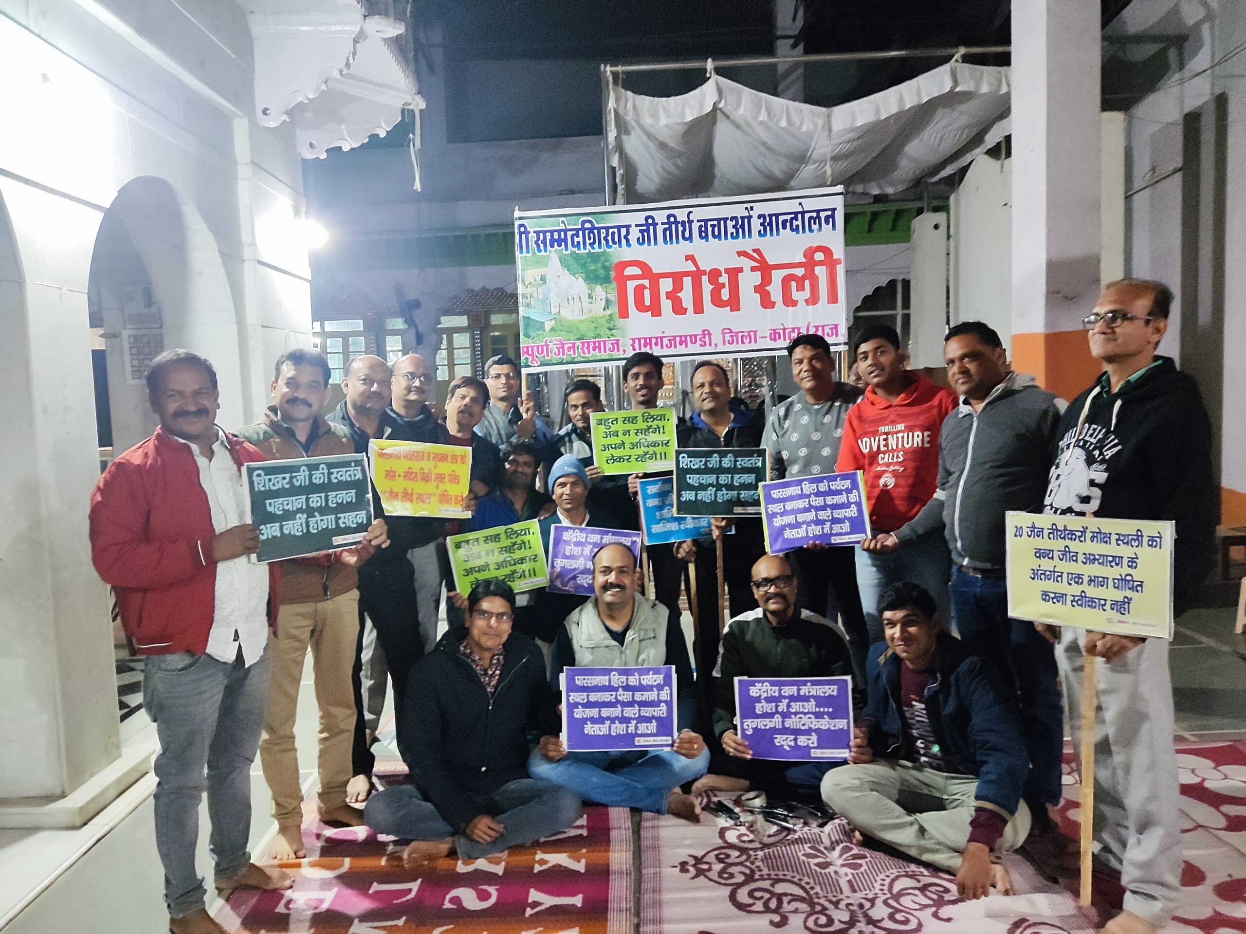 व्यापक विरोध प्रदर्शन करेगा नगर के प्रमुख मार्गो से होते हुए थाना चौराहे पहुंचकर प्रशासनिक अधिकारी को राष्ट्रपति प्रधानमंत्री, राष्ट्पति, केंद्रीय पर्यटन मंत्री, झारखंड सरकार के मुख्यमंत्री के नाम ज्ञापन देगी। जिसको लेकर संपूर्ण जैन समाज एकजुट होकर खड़ा है।