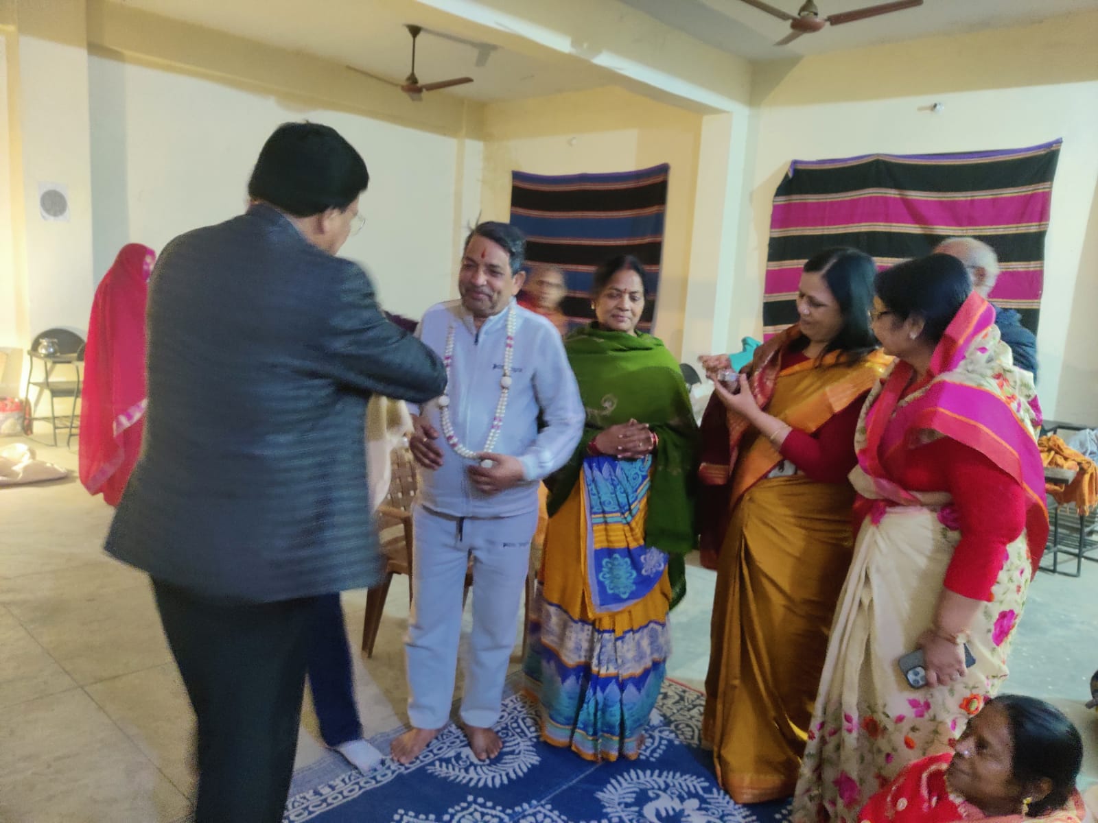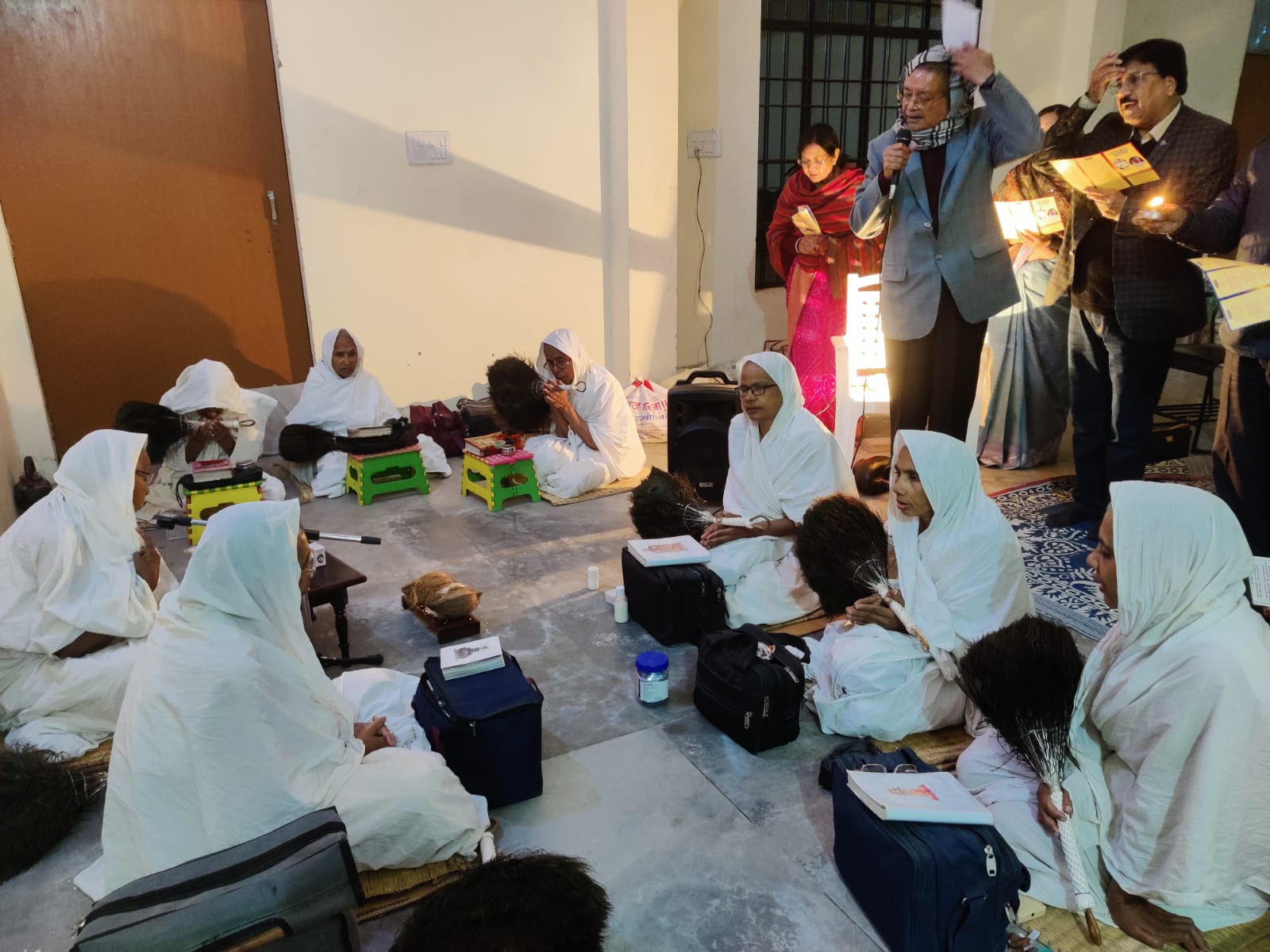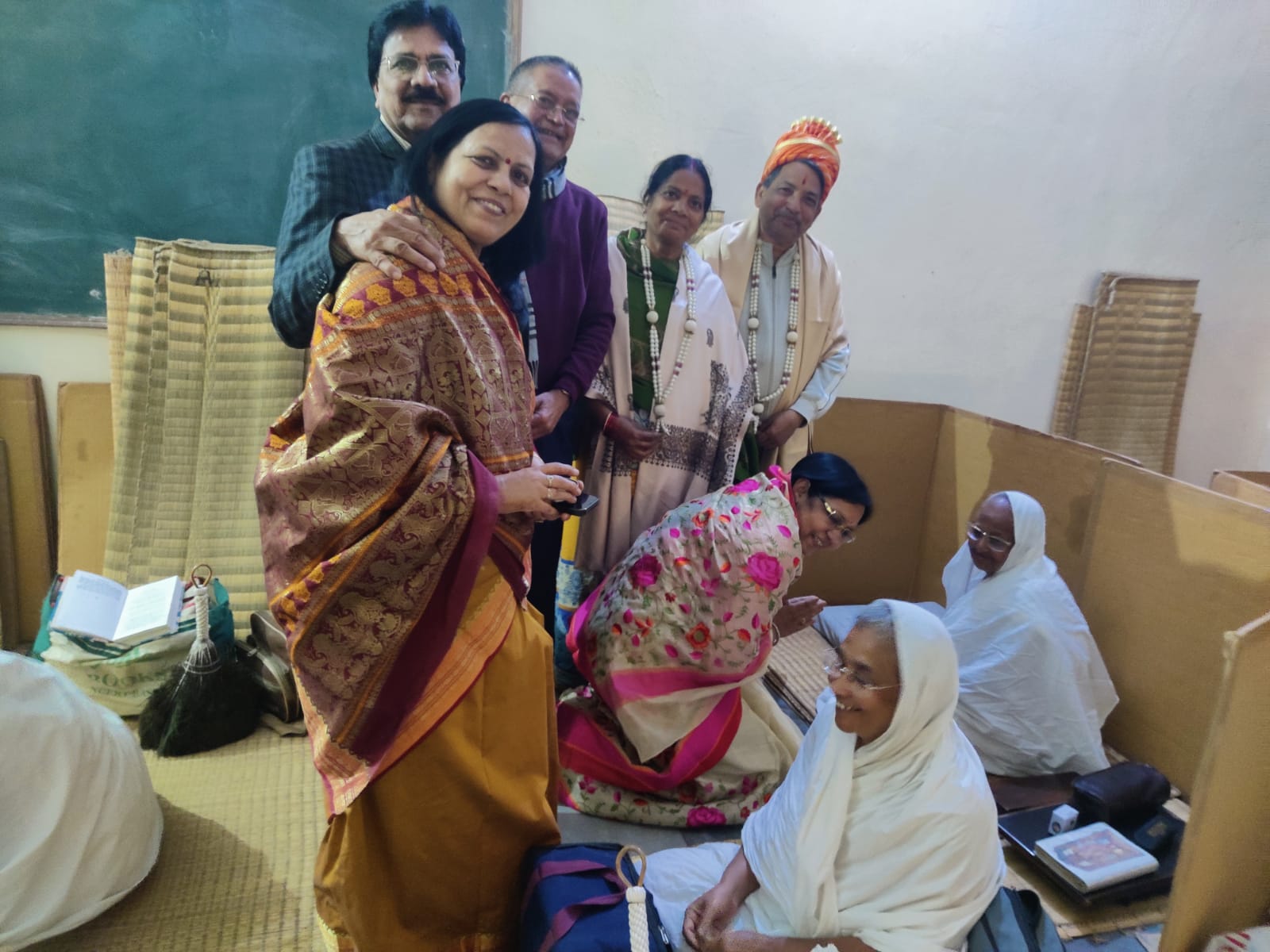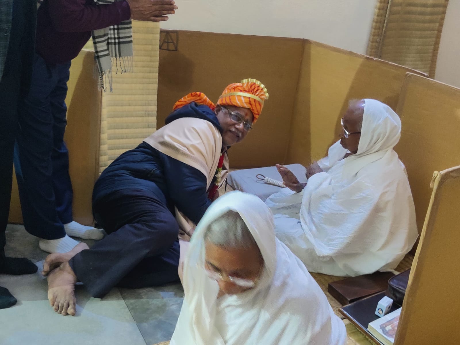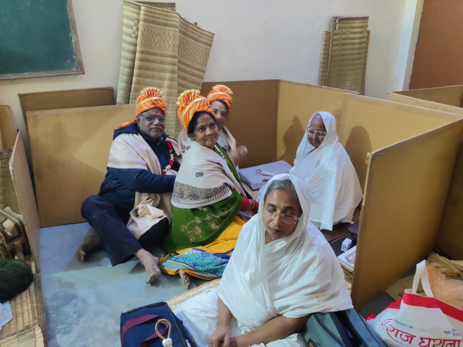 परम पुज्या सर्वाधिक दीक्षा प्रदात्री गणिनी आर्यिका विशुद्ध मति माताजी एवं पट्ट गणिनी आर्यिका विज्ञमति माताजी संघ सहित शाश्वत तीर्थ सम्मेद शिखर की ओर अपने कदम बढ़ा रहा है। आज की प्रातः बेला और गौरवमई हो गई जब गुरु मां के दर्शन करने विशुद्ध कुल संघ पति श्री देवेंद्र उर्मिला टोंग्या एवम विशुद्ध कुल शिरोमणि मां विशुद्ध विज्ञ सम्मेद शिखरजी पदयात्रा के संयोजक श्री महेश जैन पदम गार्ड पहुंचे। जहां उनका भाव भीना स्वागत अभिनंदन किया गया। पूज्य गुरु मां अपने संग सहित भीषण शीतलहर के बावजूद भी पावन तीर्थ की ओर कदम बढ़ा रही हैं जो सचमुच अभूतपूर्व है।