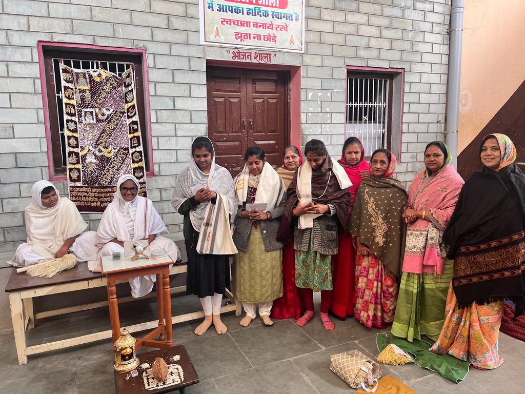 साध्वी श्री जी के साथ चल रही बाड़मेर की साक्षी सिंघवी, निशा बोथरा, भावना सकलेचा, जो बैरागन बहने हैं।वे निकट भविष्य में दीक्षा लेकर संयम पथ पर चलेंगी उनका भी श्रीसंघ की तरफ से बहुमान किया गया।