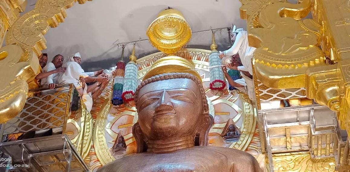 युग के आदि में अषि मषि कृषि विद्या वाणिज्य और शिल्प का उपदेश देने वाले जैन दर्शन के प्रथम तीर्थंकर भगवान आदिनाथ स्वामी का निर्वाण कल्याण हम सब मिलकर आज अतिशय क्षेत्र दर्शनोंदय तीर्थ थूवोनजी में भक्ति भाव से मना रहे हैं अंतिम कुलकर मनु महाराज नाभिराय के पुत्र राजा रिषभ देव ने जगत को जीवन जीने की कला सिखाई बहुत लम्बे समय तक राज्य करने पर सौधर्म इन्द्र ने वैराग्य का प्रसंग लाते हुए नीलंजना को राजदरबार में नृत्य के प्रस्तूत किया जहां नृत्य करते करते नीलंजना की मृत्यु को देखकर राजा रिषभ देव को वैराग्य हो गया उन्होंने कठोर तपस्या कर आज के दिन कैलाश पर्वत से निर्वाण को प्राप्त किया जिनका हम निर्वाण कल्याण मनाकर लाड़ू समर्पित करने जा रहे हैं।