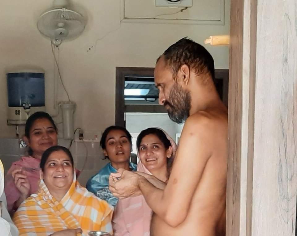 अपने जन्मदिन को धर्म मय में मनाया जी हां उन्हें कितने दुर्लभ संयोग मिले। उनकी जन्मभूमि कर्मभूमि किशनगढ़ में उन्हें वात्सल्य वारिधि आचार्य वर्धमान सागर महाराज का पावन आशीष व सानिध्य मिला, दूसरा पंचकल्याणक के रूप में आज प्रभु का जन्म कल्याणक भी मनाया गया। एक और उनका जन्म दिवस और प्रभु का जन्म कल्याणक महोत्सव यह भी पुण्यवान व्यक्तित्व को ही मिला करता है। आज उन्होंने इस आयोजन की बेला में चित्र अनावरण दीप प्रज्वलन किया। गुरु चरणों का परिवार सहित पाद प्रक्षालन किया और गुरु के चरणों को मस्तक पर लगाया।