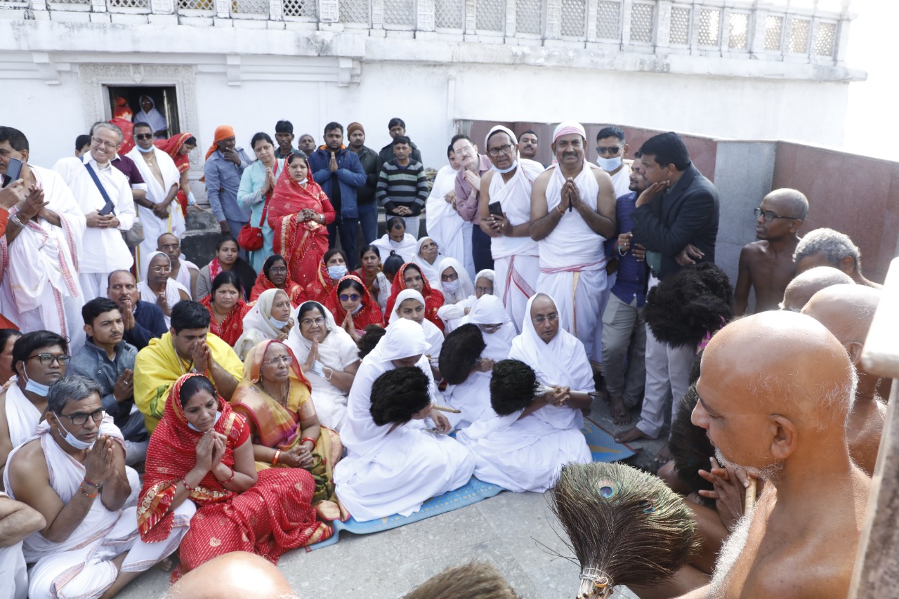 उभयमासोपवासी अंतर्मना आचार्य 108श्री प्रसन्न सागर जी महाराज के सिंहनिष्क्रीडित व्रत अब समापन की ओर बढ़ रहा है 23 जनवरी को अन्तर्मना का पारणा सम्मेदशिखर जी के स्वर्णभद्र कूट पर लगभग 25 मुनि एवं आर्यिका के सानिध्य में सम्पन्न हुवा सभी साधु गण ने अन्तर्मना के पारणा की अनुमोदना कर निरन्तरराय आहार बंगाल के भक्तों द्वारा करवाया गया।