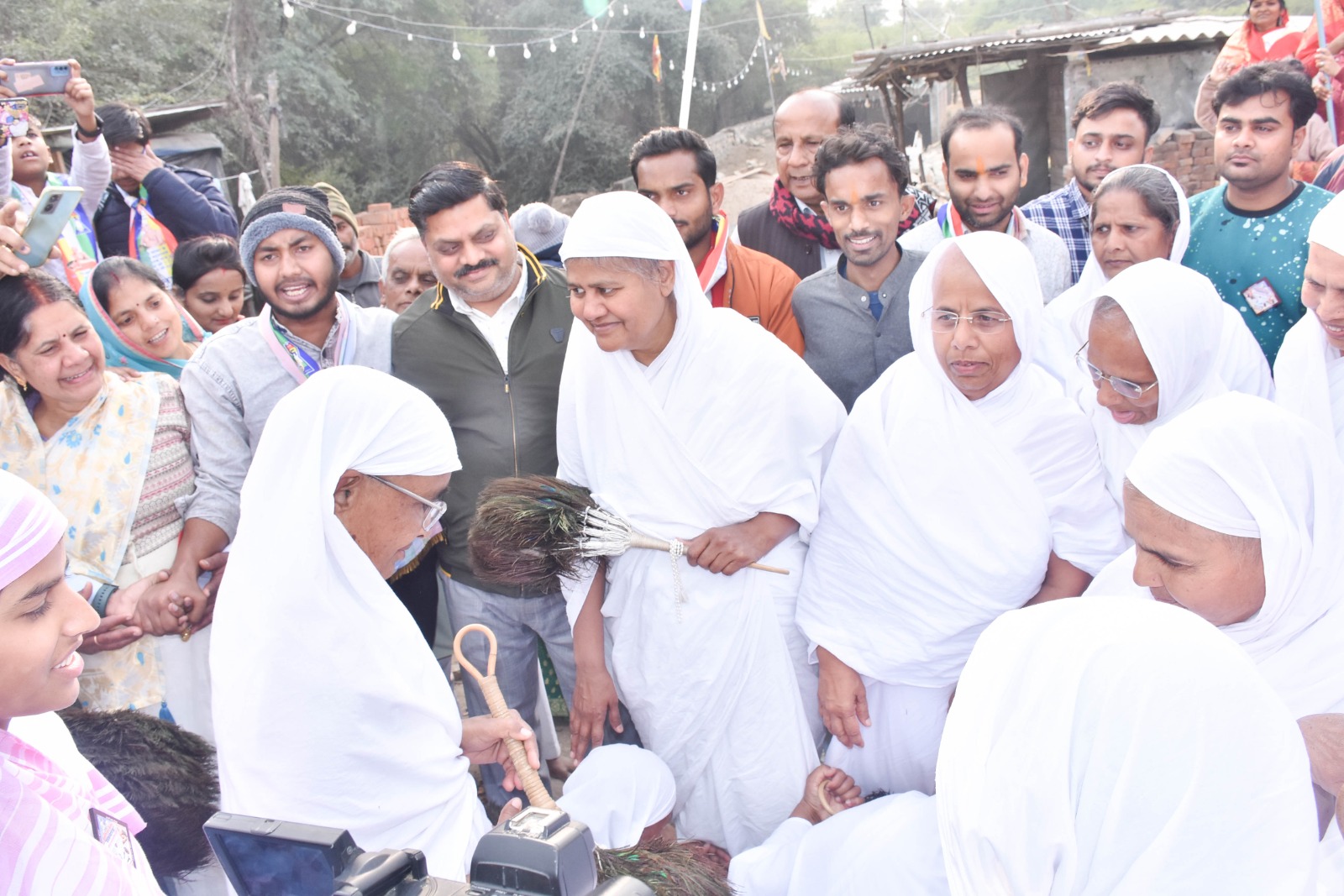 मुनि संघ की मंगल अगवानी ढोल नगाड़ों के साथ की गई। मुख्य द्वार पर महिला मंडल के द्वारा मंगल कलशो के साथ मुनि संघ की आरती उतारी गई कमेटी के द्वारा मुनि संघ का पाद प्रक्षालन भी किया गया। वहीं दूसरी ओर बड़े बाबा के उच्चासन दिवस पर कुंडलपुर क्षेत्र कमेटी के द्वारा मिष्ठान वितरण किया गया एवं गरीब जनों में कंबल का भी वितरण किया गया।