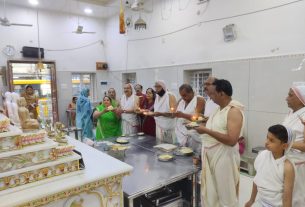 पहुंचे। वहा से जय-जय कारों के बीच पूज्य मुनि संघ को जिन मंदिर लाया गया। जहां मंदिर के प्रवेश द्वार पर उनका मंगल पाद प्रक्षालन किया गया।