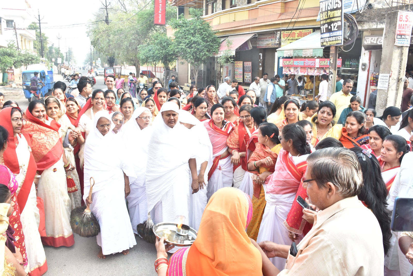स्थान स्थान पर पूज्य गुरुमां का पाद प्रक्षालनकर आरती की गई । गुरुमां के भव्य मंगल प्रवेश में जैन युवा सेवा मंडल मुरार की प्रमुख भूमिका रही ।
