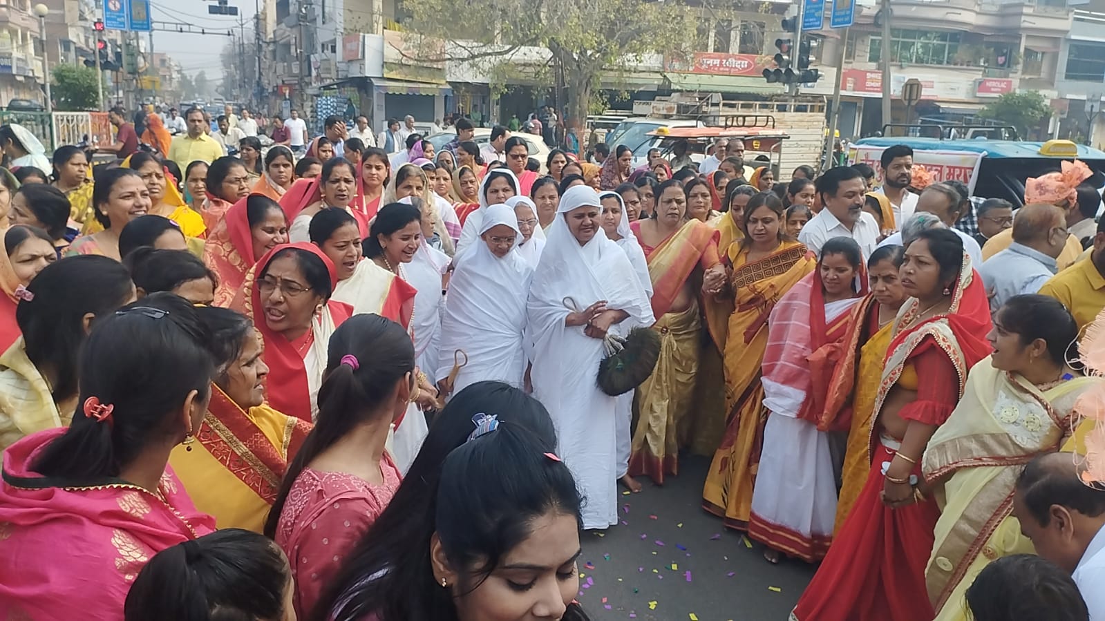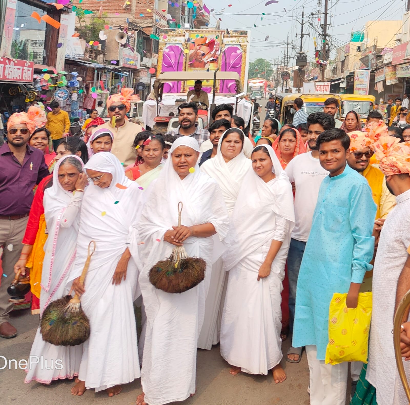 स्वस्तिधाम प्रणेत्री, विदुषी लेखिका, भारत गौरव परम पूज्य गुरुमां गणिनी आर्यिका श्री स्वस्तिभूषण माताजी एवं गणिनी आर्यिका लक्ष्मीभूषण माताजी के मुरार में मंगल प्रवेश की भव्य एवं विशाल शोभायात्रा में चारों ओर जनमानस ही जनमानस दिखाई दे रहा था ।