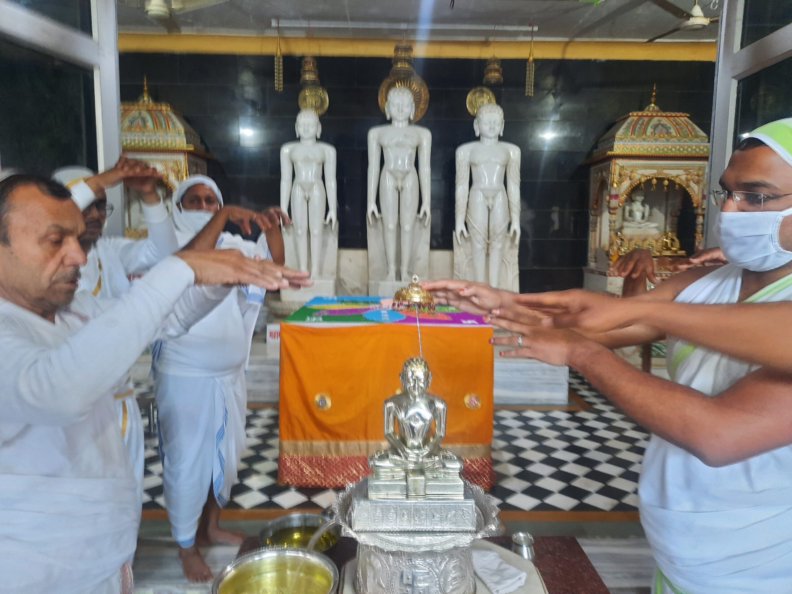 प्रथम तीर्थंकर आदिनाथ भगवान का मोक्षकल्याण दिवस के रूप में मनाया गया इस बेला में त्रिमूर्ति जिनालय में श्रीजी का अभिषेक शांतिधारा की गई प्रथम अभिषेक का सौभाग्य विनोद कुमार सुनील कुमार सुरलाया व मुख्य शांतिधारा का सोभाग्य श्रीमती संतोष बाई, सुरेश कुमार सिद्धार्थ कुमार रेखा, पूजा,प्रीति,अंकित,अनायशा प्राची अंकित बाबरिया परिवार रामगंजमडी को मिला व ब्रह्मचारिणी रानू दीदी, गणेश कुमार, महावीर, देवेंद्र,प्रदीप,