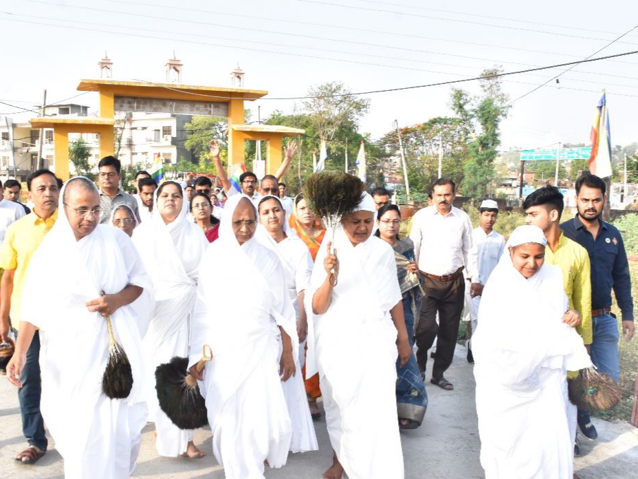 श्री सिद्धक्षेत्र सोनागिर कमेटी, स्याद्वाद शिक्षण परिषद, लंबेचू धर्मशाला कमेटी, बीसपंथी धर्मशाला कमेटी सहित सभी संस्थाओं ने पूज्य आर्यिका संघ के पाद प्रक्षालन करते हुए आरती उतार कर अगवानी की । पूज्य माताजी के मंगल प्रवेश के समय अपार जनसमुदाय मौजूद था ।