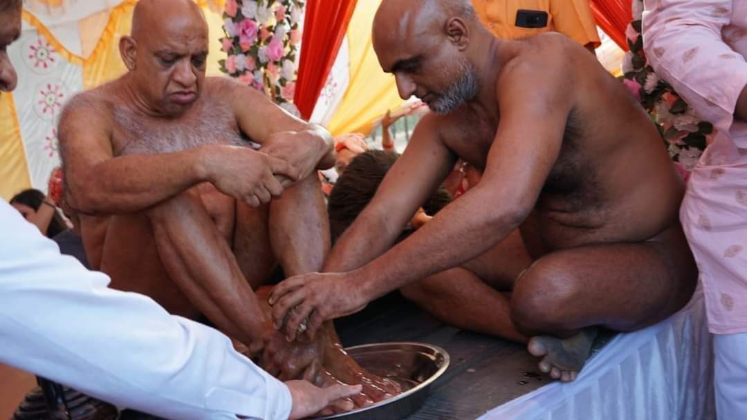 पूज्य मुनिश्री अविचल सागर महाराज ने जब मंगल आगवानी की तो वह विनय भाव का अभूतपूर्व उदाहरण प्रस्तुत हुआ। जब मुनिश्री ने महाराज श्री के चरणों में मस्तक झुका कर नमोस्तु गया तब इन दृश्यों को देख सभी की आंखें नम सी हो गई।