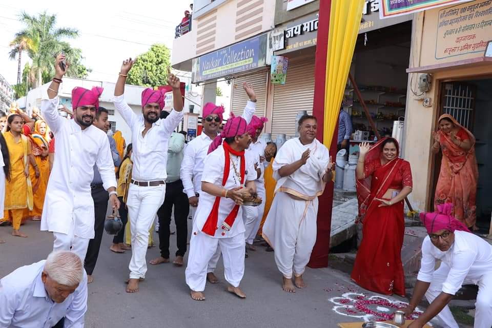 परम पूज्य वात्सल्य वारिधि आचार्य शिरोमणि 108 श्री वर्धमान सागर जी महाराज संघ का मंगल प्रवेश दिनांक 6 जून 2023 मंगलवार को प्रातः 7:00 श्री वासुपूज्य। मंदिर संतोष नगर हुआ ।परसू राम चौराहा के पास सेंट्रल एरिया आवास योजना दरवाजे से बैंड बाजे के साथ शोभायात्रा सहित आचार्य शिरोमणि श्री वर्धमान सागर महाराज मंदिर जी पधारें। श्री भंवरलाल गोटी अध्यक्ष एवम् महिपाल जैन महामंत्री ने बताया कि शोभा यात्रा ने समाज परंपरागत परिधान एवम् पगड़ी धारण किए थे, महिलाओं ने मंगल कलश धारण किए।आचार्य श्री के स्वागत में अनेक फ्लेक्स स्वागत द्वार लगाए गए आचार्य श्री की जगह जगह मंगल आरती उतार पर चरण प्रक्षालन किए गए।कार्यक्रम का संचालन प्रकाश सिंघवी ने किया।भवर लाल गोटी द्वारा आभार प्रदर्शन किया गया।