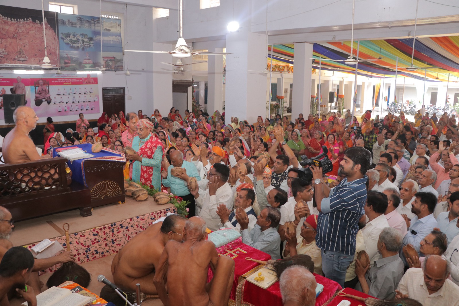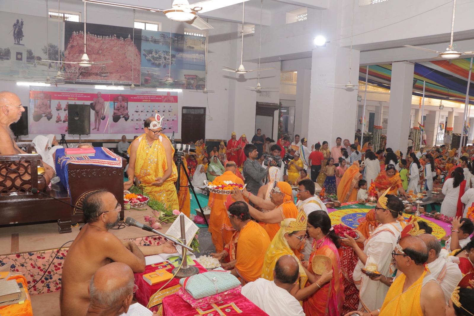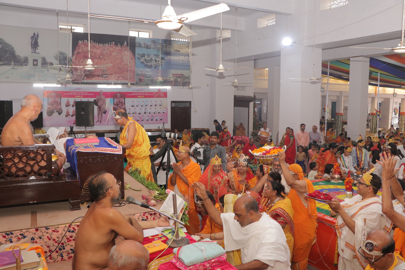 आचार्य शिरोमणी श्री वर्धमान सागर जी संघ सहित पंडाल में विराजित हुए इसके पूर्व झंडारोहण सुरेश कुमार राजकुमार पद्मावत परिवार ,मंगल कलश स्थापना शांतिलाल जी विजयलाल जी वेलावत परिवार आचार्य श्री के पाद प्रक्षालन जय कुमार जी कारवा परिवार ,शास्त्र भेंट चांदमल गौरव गनोडिया परिवार द्वारा किया गया। आचार्य श्री के प्रति विनयांजलि किरण दीदी, समरकंठाली,आरती सनत जैन इंदौर, जय कारवा ,सुरेश मारोरा, डा महेश , नाथू लाल जी उदयपुर नरेश विश्व राज सिंह,रविंद्र श्रीमाली,एवम आर्यिका श्री वत्सल मति जी ने व्यक्त की। शांति लाल वेलावत सुरेश पदमावत ने बताया कि आज के मुख्य अतिथि उदयपुर के महाराज कुमार विश्वराज सिंह एवं रविंद्र श्रीमाली अध्यक्ष भाजपा उदयपुरकी गौरव मय उपस्तिथि रही। सकल दिगंबर जैन समाज द्वारा बीसा हूमड़ भवन में चातुर्मास स्थापना हेतु श्रीफल भेट कर निवेदन किया गया।