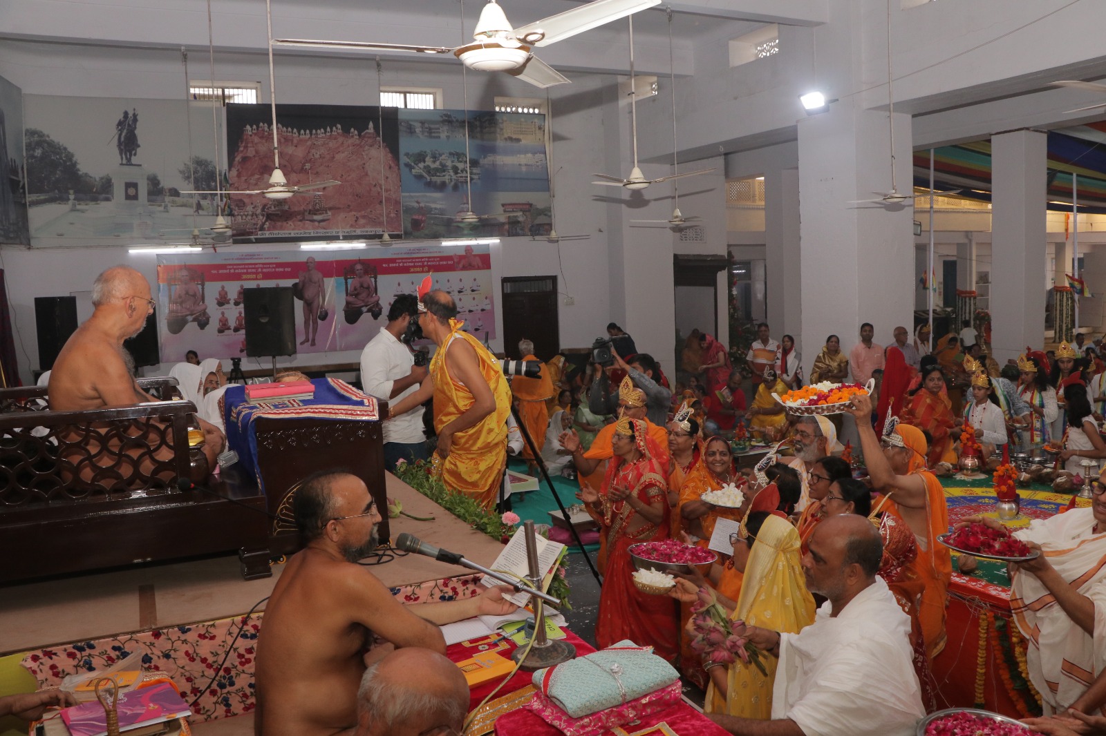 आचार्य शिरोमणि आचार्य श्री वात्सल्य वारिधि पंचम पट्टाधीश श्री वर्धमान सागर जी के 34 वे आचार्य पदारोहण होने के उपलक्ष्य में सकल दिगंबर जैन समाज द्वारा बीसा हूमड़ भवन में 6 दिवसीय कार्यक्रम आयोजित किया गया जिसके प्रथम दिवस प्रातकाल के मंगल बेला में आचार्य श्री का चरण प्रक्षालन एवं पूजन किया गया इसके पश्चात आचार्य श्री ने नगर के मंदिरों में दर्शन कर पंचामृत अभिषेक देखा ।