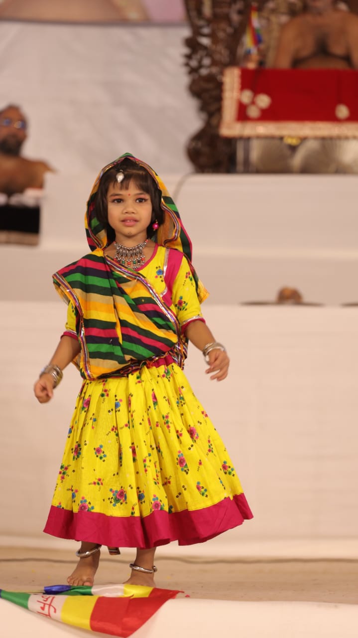 आचार्य संघ के मंचासिन होने के बाद अतिथियो द्वारा चित्र अनावरण एवम दीप प्रवज्जलन किया।मंगलाचरण नृत्य से कार्यक्रम प्रारंभ हुआ।शांतिलाल वेलावत ने स्वागत भाषण दिया।