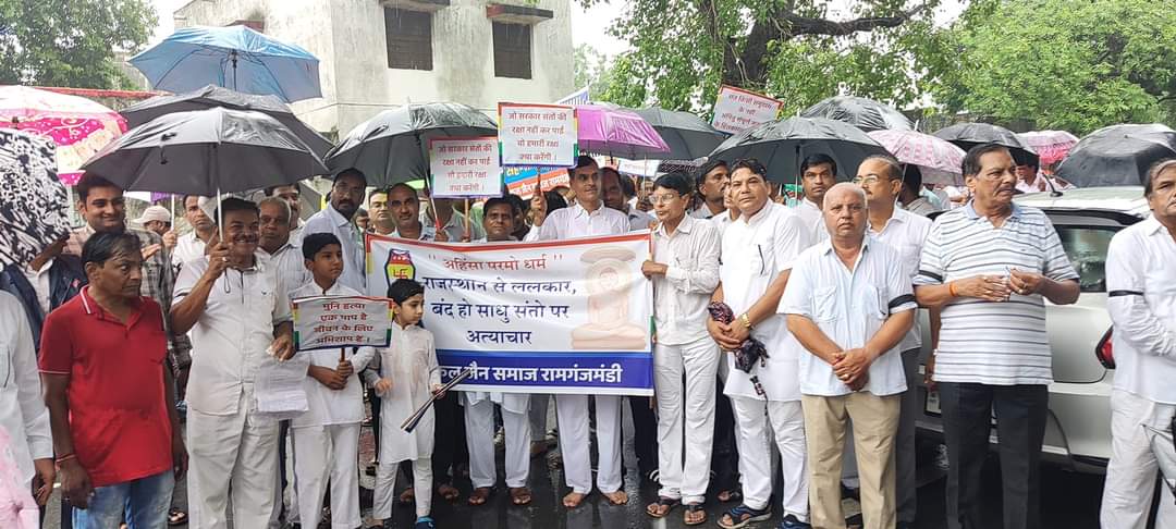 वही इस रैली से पूर्व नगर मे विराजित ऐलक श्री 105 क्षीरसागर महाराज ने कहा मुनिराज की हत्या हुई ऐसा कार्य इतिहास मे कभी नहीं हुआ जैन संतो की चर्या आज भी भगवान महावीर जेसी है ऐसे संतो की रक्षा करना पूरे देश और पूरे विश्व की जिम्मेदारी है जिन्होने ऐसा कार्य किया है वह निंदनीय है।