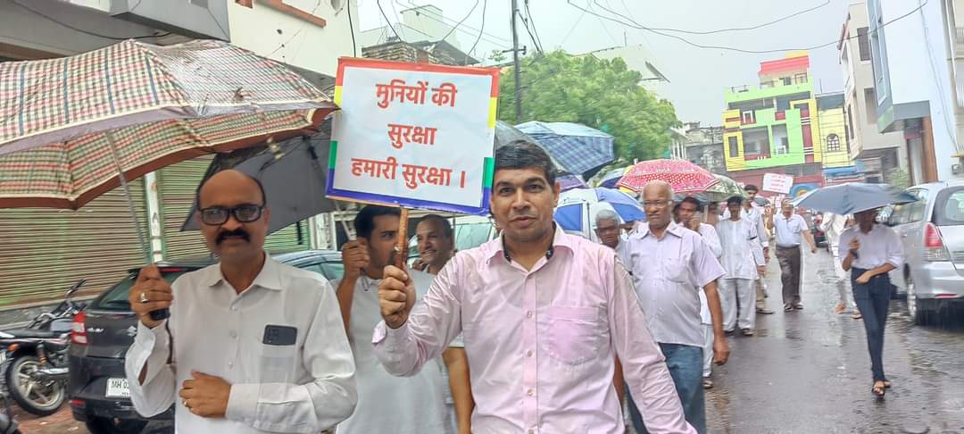 जैनाचार्य कामकुमारनंदी महाराज की हत्या के विरोध में जैन समाज का विशाल मोन जुलुस