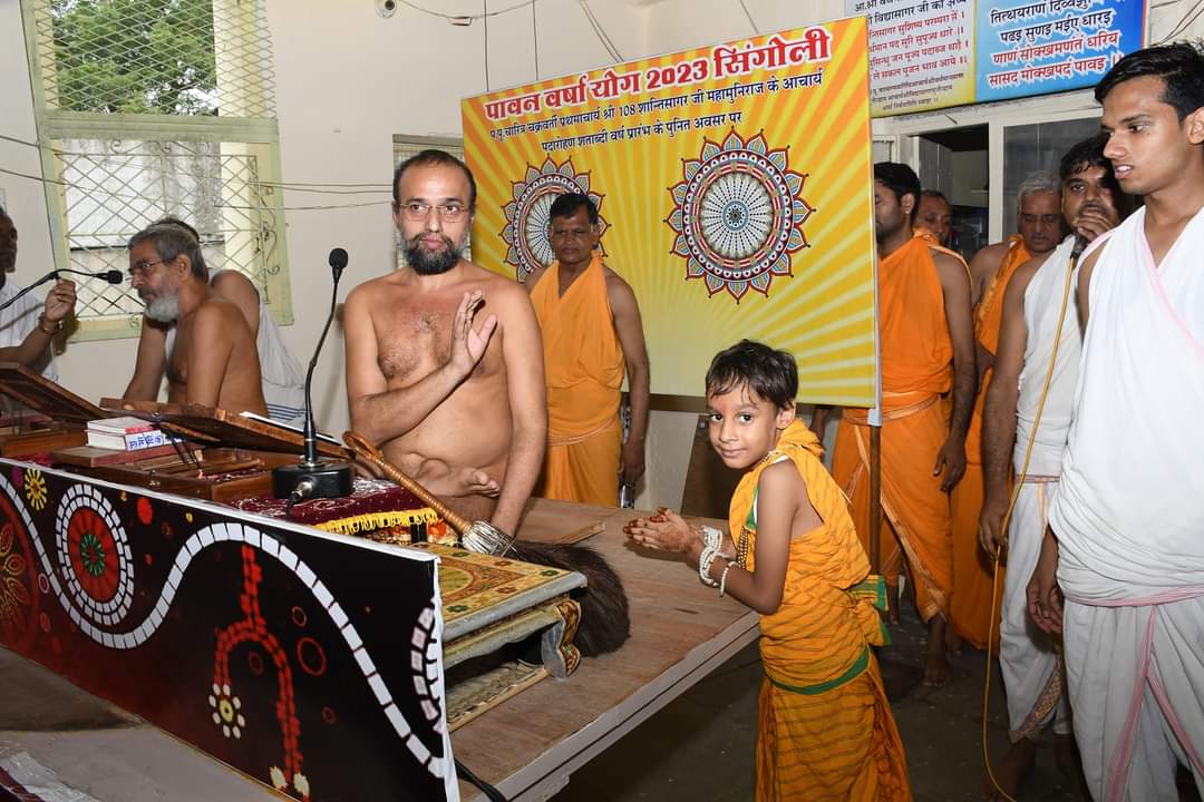 बगड़ा परिवार सिंगोली के अनय जैन बगड़ा ने मुनि श्री सुप्रभसागर जी महाराज एवम दर्शित सागर महाराज सानिध्य में श्रीजी का अभिषेक करते हुए श्रावक जीवन में प्रवेश किया