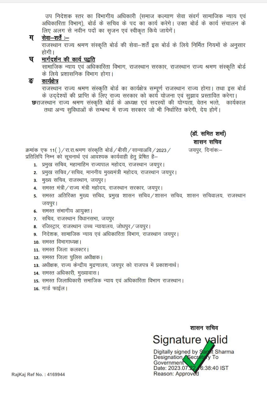 सामाजिक न्याय एवं अधिकारिता विभाग, राजस्थान सरकार, राजस्थान राज्य श्रमण संस्कृति बोर्डके लिये प्रशासनिक विभाग होगा।