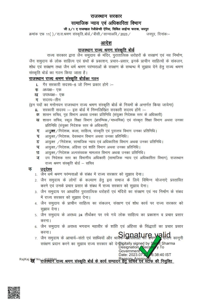 राजस्थान सरकार द्वारा जारी जैन संस्कृति बोर्ड बनने से जैन बंधुओ को क्या फायदे