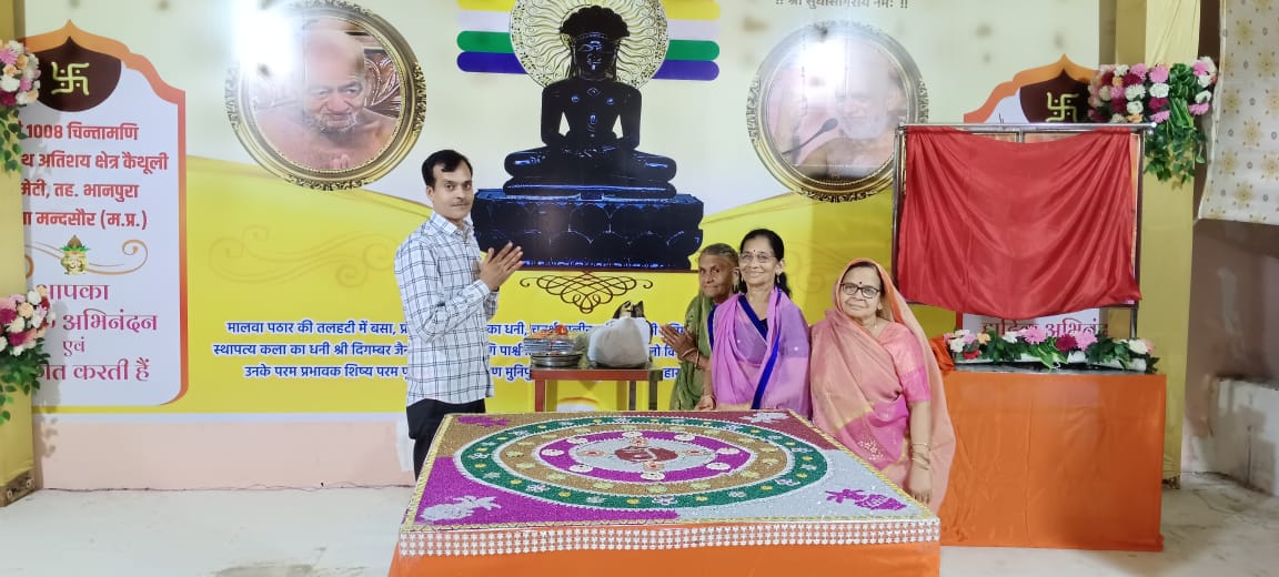 संध्या की बेला में रामगंज मंडी के नितिन जैन सबदरा, चंद्रप्रकाश जैन अध्यापक श्रीमती कनकनाला जैन, निर्मला सावला,सुशीला जैन ने वहां पर पहुंच कर पार्श्वनाथ महामंडल विधान का आकर्षक मांडना अपने हाथों से निर्मित किया।