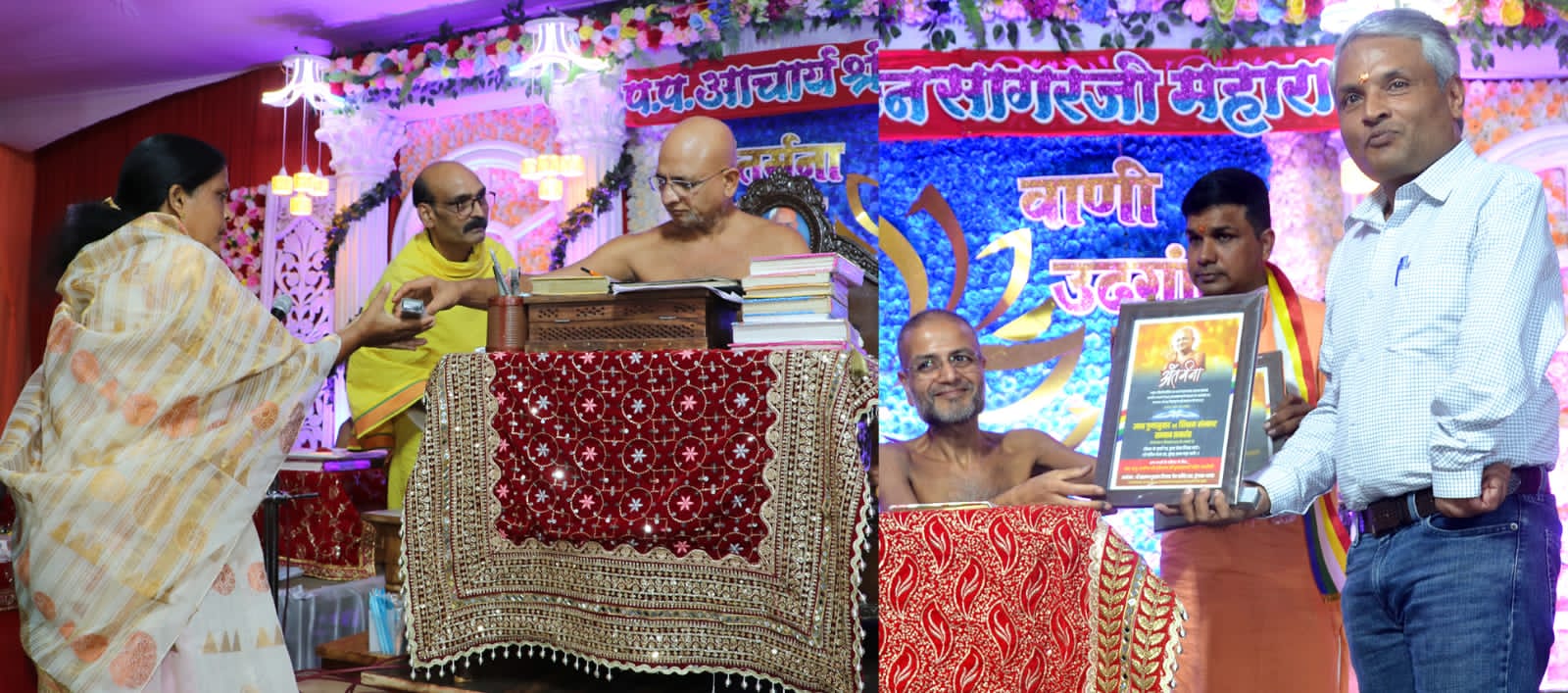 कार्यक्रम का संयोजन/संचालन/आभार ज्ञापन पुष्पगिरी सोनकच्छ से पधारे डॉ आकाश सर ने कुशलता पूर्वक किया।ट्रस्ट के सुशील पाटिल ने सभी का स्वागत किया।आचार्य श्री ने सभी शिक्षकों को जापमाला व पेन देकर आशीर्वाद दिया।