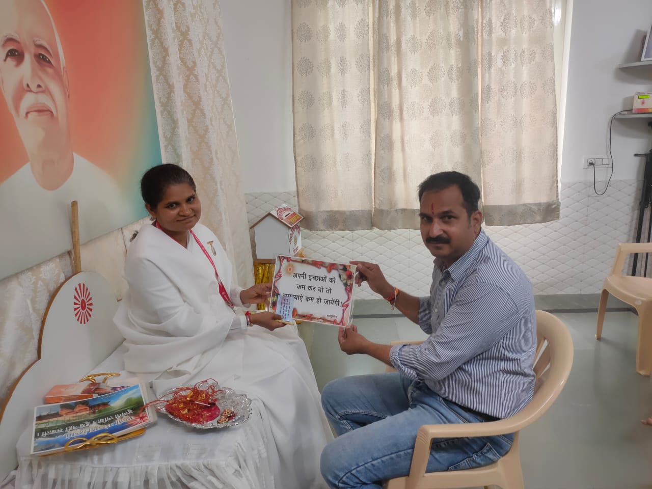 इस अवसर पर आध्यात्मिक केंद्र पर प्रमुख शीतल दीदी ने अपने उद्बोधन में यही कहा कि बहन को भाई केवल एक उपहार देकर जाए की केवल एक बुराई हमें देकर जाएंगे साथ ही उन्होंने मेडिटेशन को जीवन मे लाने हेतू लिए प्रेरित किया।