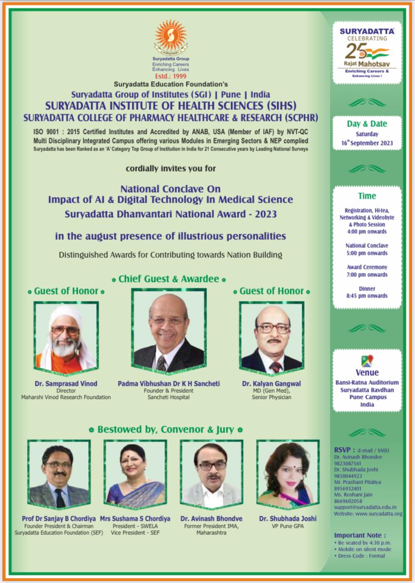 डॉक्टर कल्याण गंगवाल पुणे सूर्यदत्ता धनवंतरी राष्ट्रीय पुरस्कार 2023से हुए सम्मानित