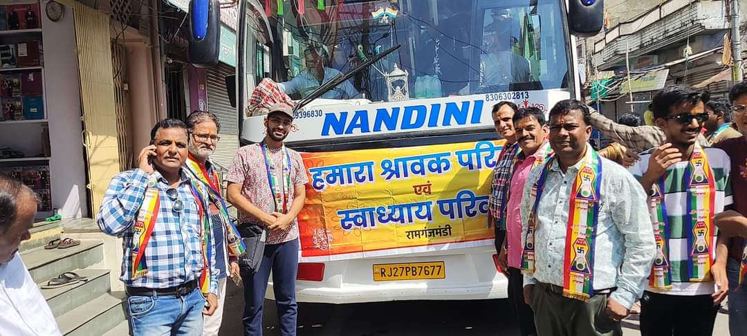 जय जय कारों के बीच शांतिनाथ भगवान की जय आदि जय कारों के साथ आचार्य श्री के जय घोष के साथ यह समस्त यात्री बस द्वारा भवानी मंडी के लिए रवाना हुए जहां से यह समस्त यात्री बीकानेर बिलासपुर ट्रेन में सवार हुए ।