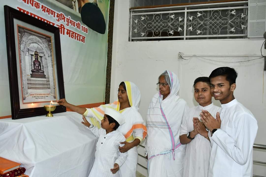 कार्यक्रम के पश्चात स्नेह भोज आयोजित किया गया। एवं शाम को सामूहिक संध्या आरती, महाराज की देशना हुई। नम्र सागर जी महाराज ने आचार्य श्री की जीवनी पर प्रकाश डाला। आचार्य श्री का जन्म शरद पूर्णिमा के दिन कर्नाटक के सदलगा गांव में हुआ। 9 वी तक शिक्षा ग्रहण करने के बाद राजस्थान के अजमेर में उन्होंने गुरु ज्ञान सागर जी महाराज से दीक्षा ग्रहण की। जैसे ही उनके माता पिता एवम् तीन भाइयों को जानकारी लगी तो उनको वापस लेने गए। लेकर तो नही आ पाए अपितु 2 भाई भी उनके साथ संयम मार्ग पर चले गए। कुछ समय पश्चात उनके ग्रहस्थ जीवन के माता पिता ने एवम् 2 वर्ष पूर्व सबसे बड़े भाई ने भी कुंडलपुर में जैनेश्वरी दीक्षा ग्रहण कर ली। पूरे परिवार ने वैराग्य धारण कर लिया। उनके द्वारा देश में स्वरोजगार देने एवम् स्वदेशी वस्त्र अपनाओ के उद्देश्य से “हथकरघा अपनाओ”, भारत वर्ष में हजारों गौशालाओ में लाखो “गौवंश को संरक्षण”, देश का नाम “इंडिया नही भारत बोलो”, “मातृभाषा हिंदी अपनाओ”, बालिकाओं की शिक्षा क्षेत्र में “प्रतिभास्थली”, “शाकाहार अपनाओ” इत्यादि संकल्प चल रहे है।
