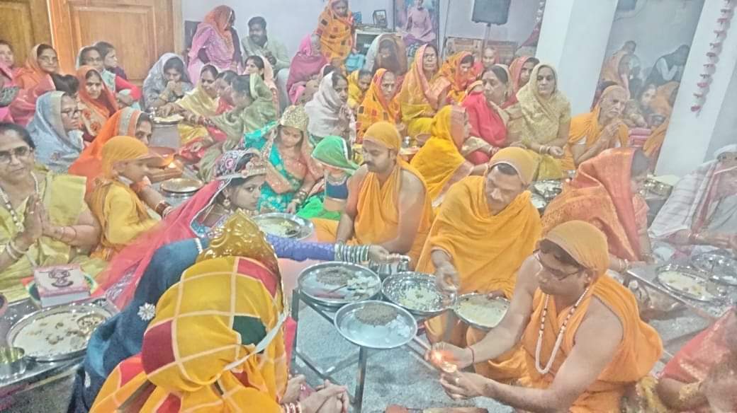 *ज्ञानतीर्थ में श्री जी की शोभायात्रा के साथ हुआ विधान का समापन*हवन एवम श्रीजी की शोभायात्रा पश्चात हुआ सामूहिक भोज