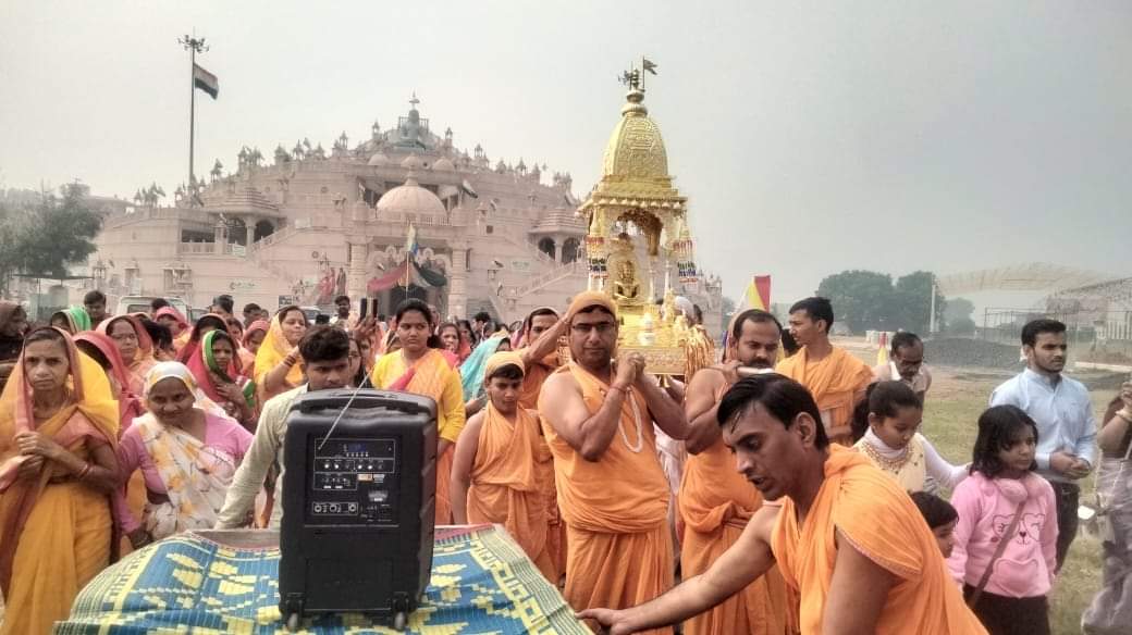 श्री सिद्धचक्र महामंडल एवम विश्व शांति महायज्ञ के समापन पर ज्ञानतीर्थ क्षेत्र में श्री जी की भव्य शोभा यात्रा निकाली गई ।