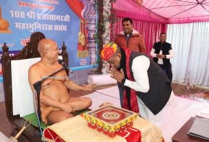 शुभम जैन ने बताया की उपस्थित विशाल धर्मसभा के मध्य आर्यिका श्री ने गुरुवर के चरणों में श्रद्धा शब्द सुमन समर्पित करते हुए कहा – मेरा परम सौभाग्य पुण्य उदय में आया जो आज मुझे भगवान के समान साक्षात आचार्य गुरुवर के दर्शन प्राप्त हुए हैं।