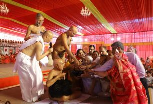 आपको बता दे पूज्य आचार्य श्री के सानिध्य में पुष्पगिरी तीर्थ में ही 24 जनवरी से प्रज्ञेश्वर आदिनाथ जिनालय का पंचकल्याणक होगा। पूज्य आचार्य श्री का मंगल प्रवेश होने के उपरांत पूज्य गुरुदेव ने जिनालय के दर्शन किए एवं निर्मित नवीन मंदिर का निरीक्षण किया। उसके उपरांत पूज्य गुरुदेव ने दोनों हाथों से मौजूद सभी भक्तों को अपना मंगल आशीर्वाद प्रदान किया।