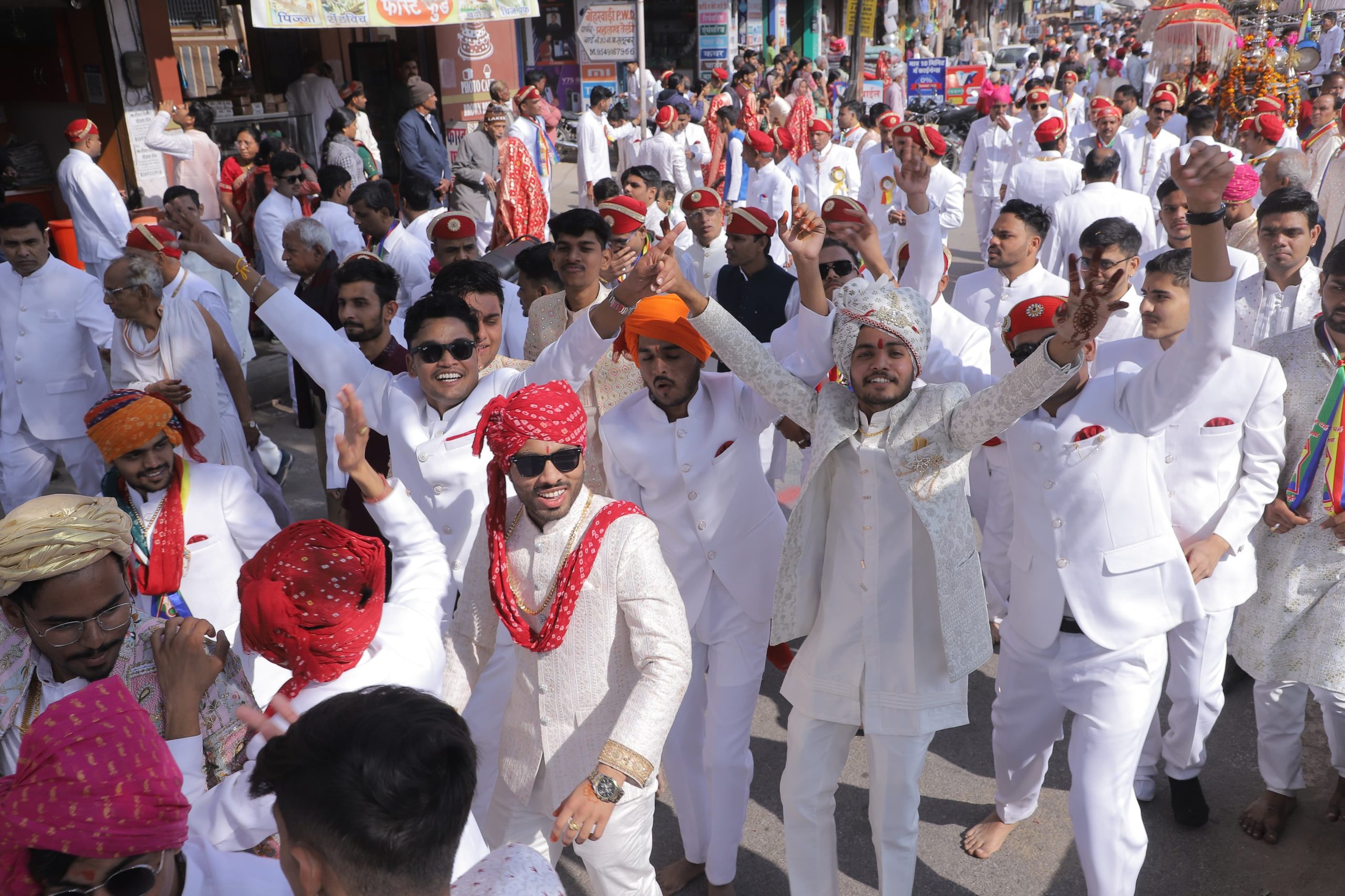 सलूंबर ।श्री बीसा नागदा दिगंबर जैन समाज की ओर से आयोजित श्रीमद जिनेन्द्र पंचकल्याणक महा महोत्सव के अवसर पर सुमेर पर्वत हेतु जुलूस निकाला गया। हाथी, घोड़ों और बग्गियों के शाही लवाजमे के साथ विभिन्न मार्गों से निकले ऐतिहासिक जुलूस में जैन समाज के लोगों का सैलाब उमड़ा। जगह-जगह जुलूस को विभिन्न समाज के लोगों की ओर से पुष्पवर्षा कर स्वागत किया गया। जुलूस के वर्धमान सभागार पहुंचने पर वात्सल्य वारिधि आचार्य श्री वर्धमान सागर महाराज ससंघ की मौजूदगी में 1008 कलशों से भगवान का जन्माभिषेक मनाया गया। 1008 श्री आदिनाथ भगवान के श्रीमद जिनेन्द्र पंचकल्याणक प्रतिष्ठा प्राण महामहोत्सव के दूसरे दिन सलूंबर में ऐतिहासिक जुलूस वर्धमान सभागार से जुलूस रवाना हुआ। यात्रा में 5 हाथी व बग्गियों में पंचकल्याणक प्रतिष्ठा महोत्सव के प्रमुख पात्र इन्द्रगण को शामिल होने का सौभाग्य मिला। 4 बैड की मधुर ध्वनियों के बीच निकली यात्रा का जगह-जगह विभिन्न समाज के लोगों ने पुष्पवर्षा कर अभिनंदन किया। यात्रा विभिन्न क्षेत्रों से जैन समाज के पुरुष व महिलाएं उमड़ी। जलूस प्रमुख चौराहे होते हुए पुनः वर्धमान सभागार पहुंचा।