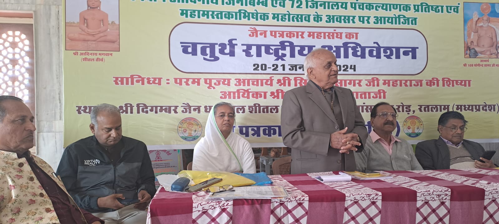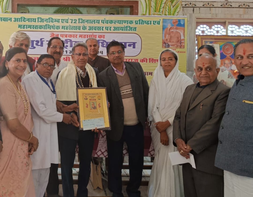 जैन पत्रकार महासंघ का चतुर्थ राष्ट्रीय अधिवेशन 20- 21 जनवरी 2024 को दिगंबर जैन धर्मस्थल शीतल तीर्थ रतलाम मध्य प्रदेश में परम पूज्य साहार्द्र मती माताजी व शीतल तीर्थ की अधिष्ठात्री बा. ब्रह्म. डॉक्टर सविता जैन के सानिध्य में विभिन्न कार्यक्रमों के साथ उत्साहपूर्वक राष्ट्रीय अध्यक्ष रमेश जैन तिजारिया की अध्यक्षता में संपन्न हुआ।