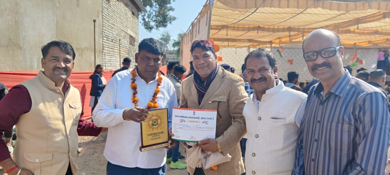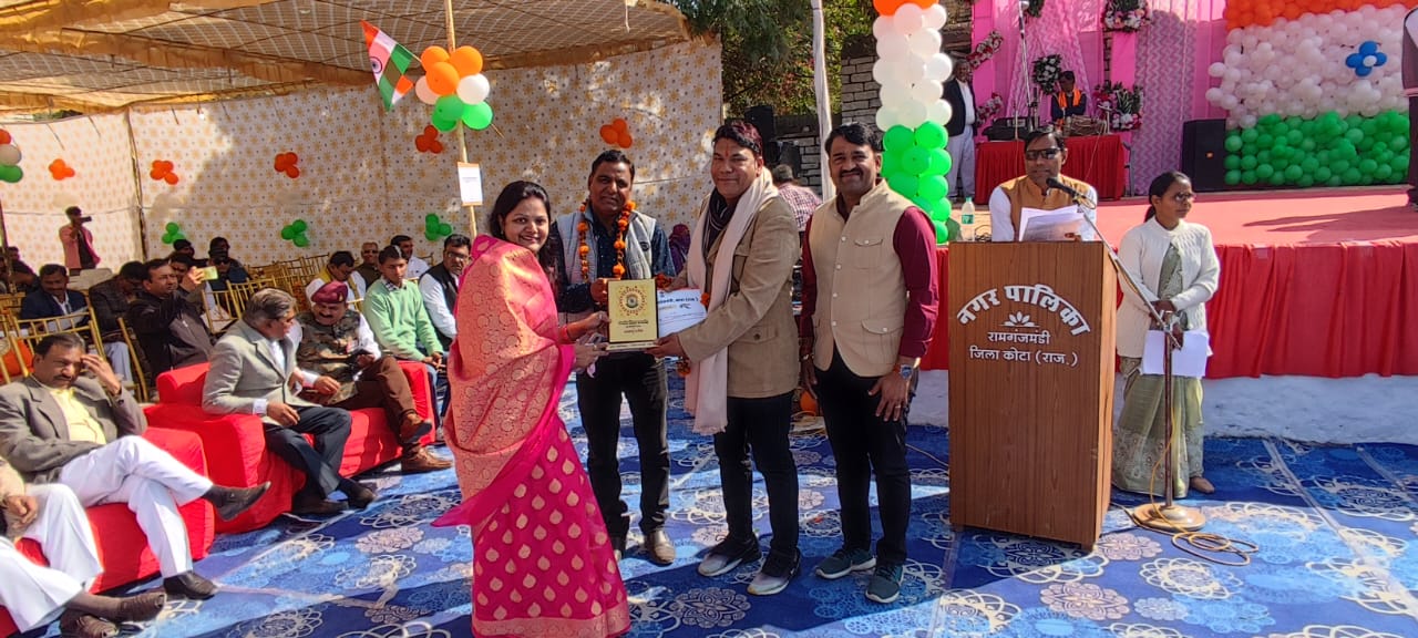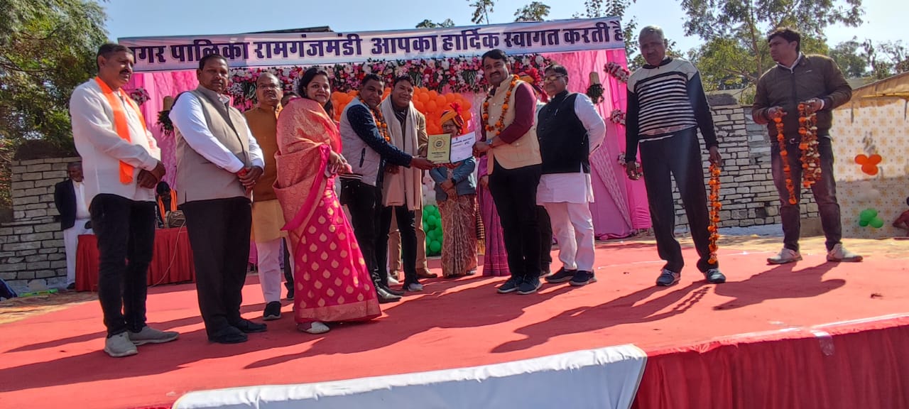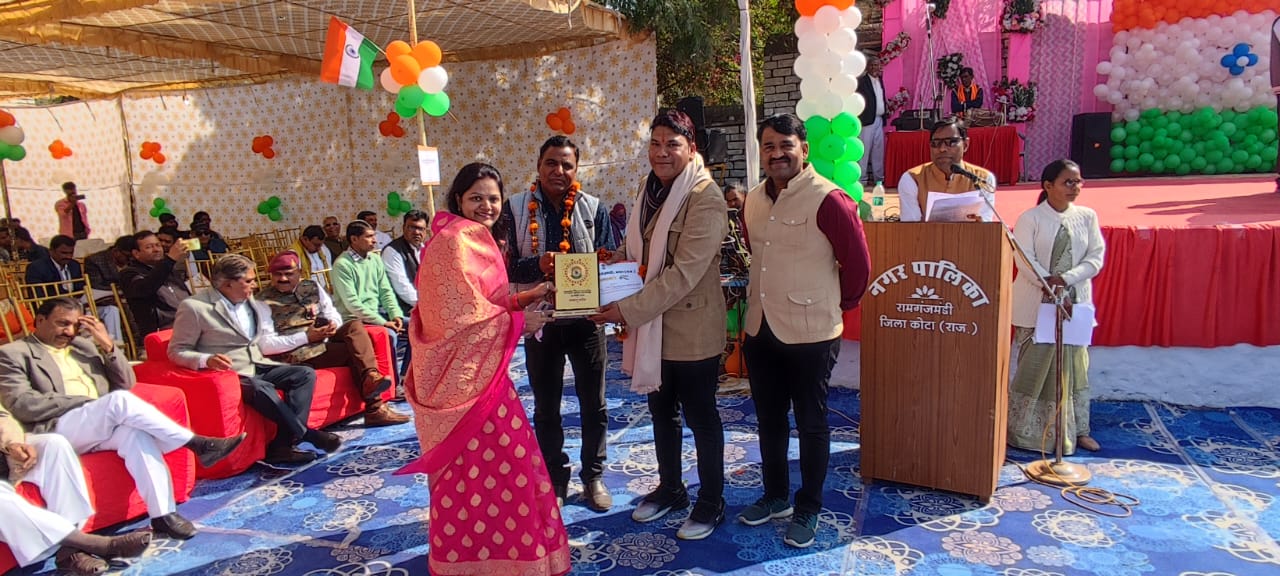 गणतंत्र दिवस पर आयोजित समारोह में रामगंजमंडी की स्वयंसेवी संस्था दिगंबर जैन सोशल ग्रुप रामगंज मंडी को सम्मानित किया गया।